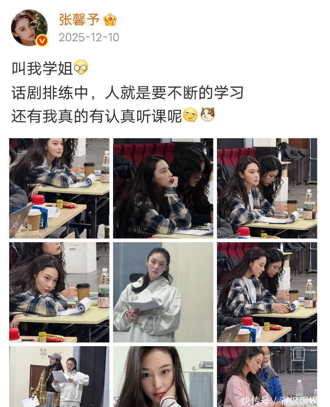 去年月底中旬她就在社交平台分享自己的话剧排练状态。